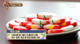 목차 1 개요 2 같이 보기 3 참고 개요 玉春糖, 玉春 옥춘당, 옥춘 쌀가루로 만든 한국 전통 사탕 쌀가루로 여러 가지 모양으로 색을 맞추어서 만든 사탕과자 동글납작한 빨간 사탕을 흰색, 노란색, 초록색 등 여러 빛깔로 장식해 만든다. 구슬처럼 동그랗다고 하여 붙여진 이름이다. 잎사귀나 그밖의 여러 가지 모양으로 빛깔을 맞춰서 만든다. 제사, 혼례, 회갑 등 큰상차림에 올린다. 가운데에 깨강정을 넣은 깨옥춘도 있다. 같이 보기 한과 강정 참고 위키백과 "옥춘당" 위키낱말사전 "옥춘당" 다음사전 "옥춘당" 다음백과 "옥춘당" 네이버사전 "옥춘당" 네이버백과 "옥춘당" 나무위키 "옥춘당" 리브레 위키 "옥춘당"