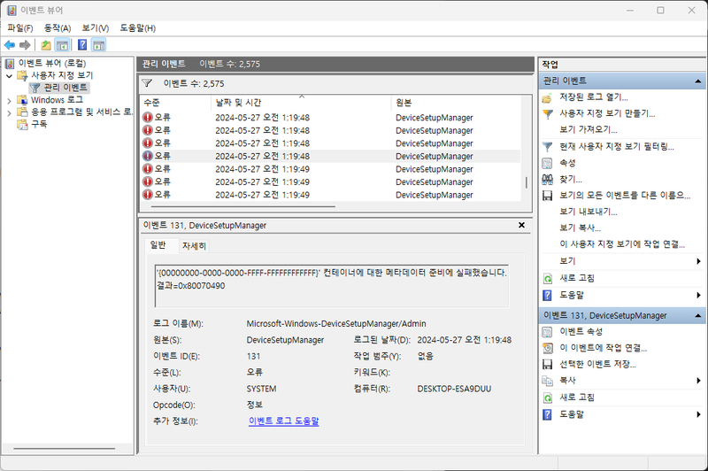 - 이벤트 131, DeviceSetupManager