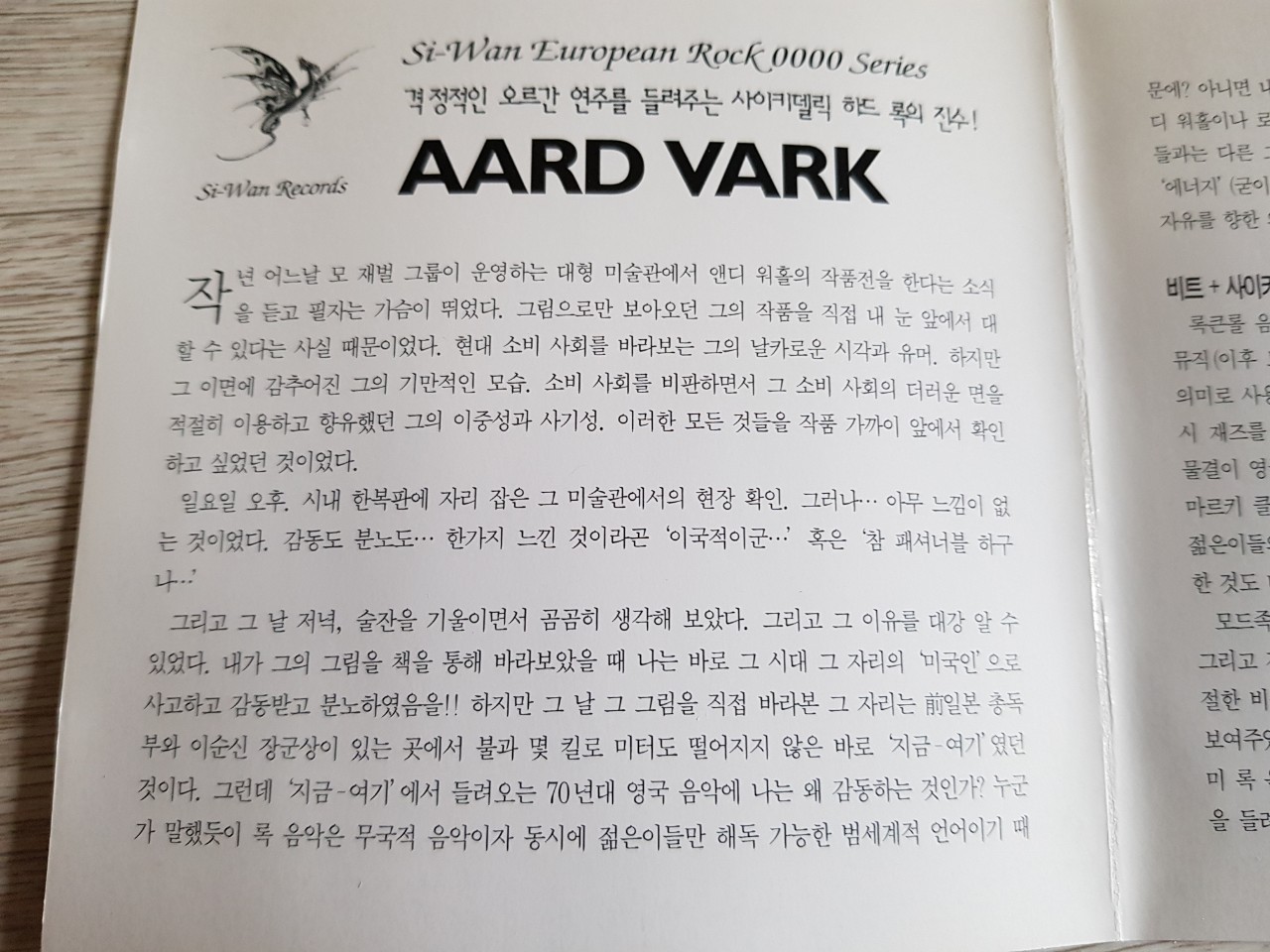 『HoPE (Progressive Rock)-호프 음악이야기 (go SGGHOPE)』 538번 제 목:[해설지] AARD VARK 올린이:빛이룸 (조성찬 ) 98/03/25 17:22 읽음: 59 관련자료 없음