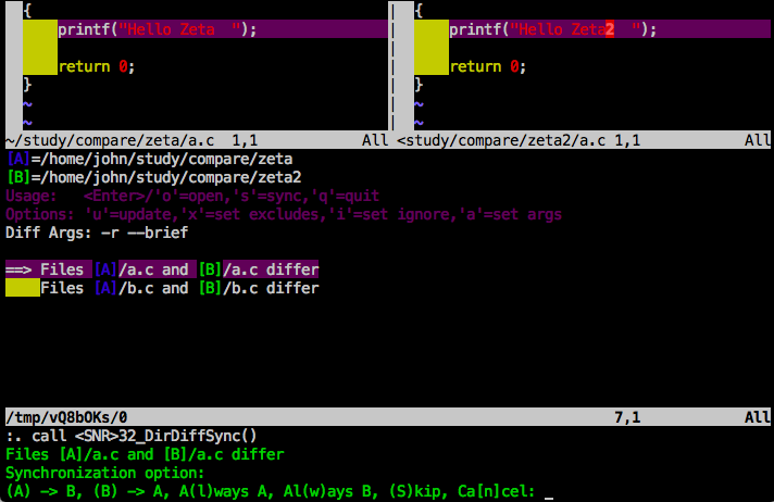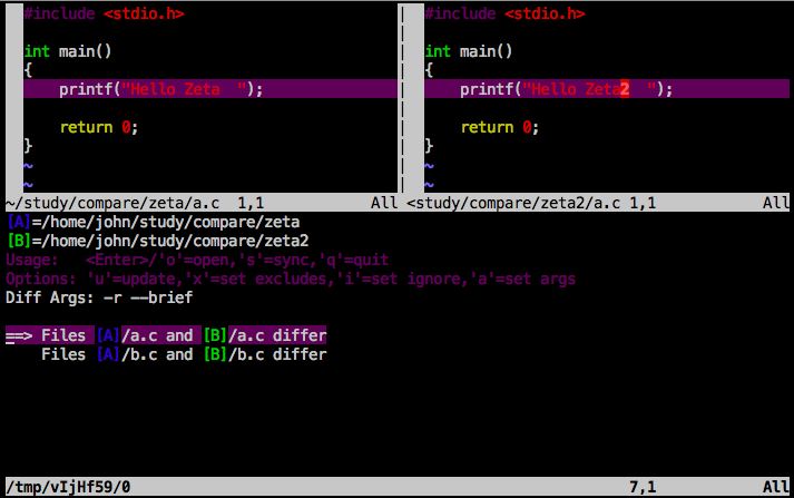 :DirDiff zeta/ zeta2/명령을 입력했다.